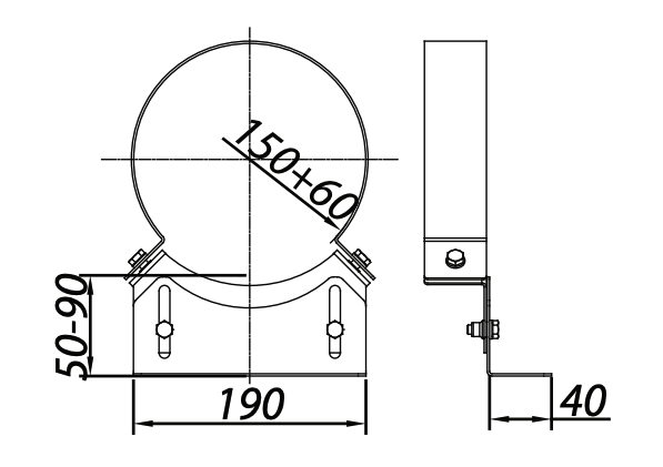 Obejma służy do przymocowania komina z izolacją ADAM DW do zewnętrznej ściany budynku. Regulacja obejmy wynosi 50 - 90 mm.