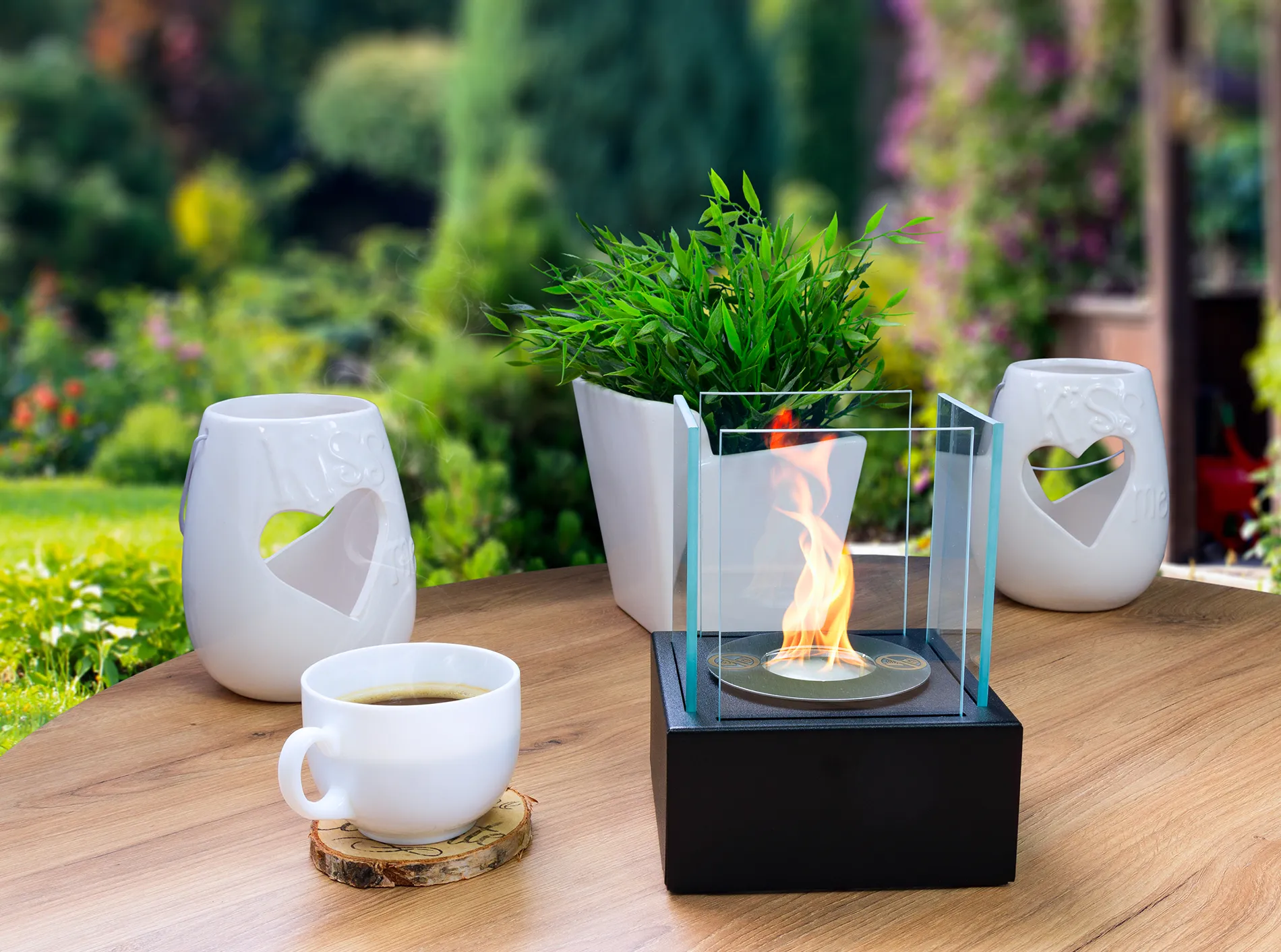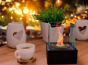 Biokominek wolnostojący Smart czarny strukturalny mat świetnie sprawdzi się jako ozdoba stołu podczas kolacji z przyjaciółmi lub jako dodatkowe źródło ciepła w chłodne poranki.