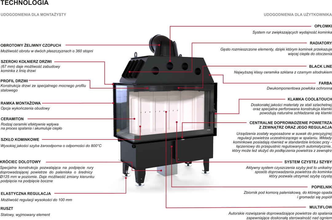 + komora paleniska wyłożona wysokiej jakości żarobetonem