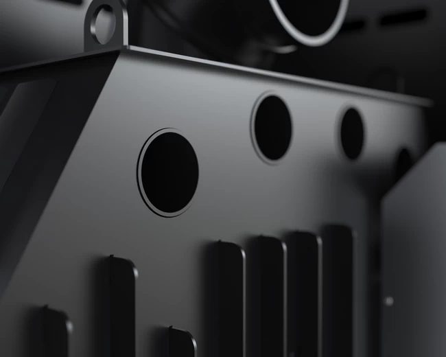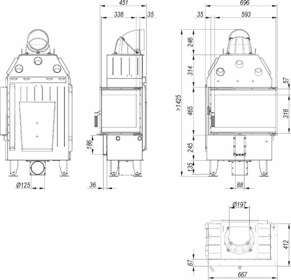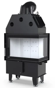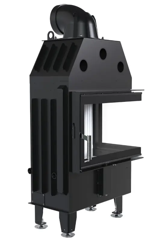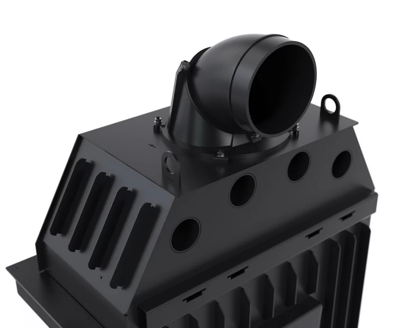 Opłomki (płomieniówki) w tym wkładzie kominkowym zostały opracowane tak, by m.in. poprawiać efektywny rozkład ciepła. Ich specjalny kształt powoduje, że płomienie są kierowane na właściwe partie komory spalania. W ten sposób drewno pali się równomierniej, a sadzy powstaje mniej. Proces spalania generuje wyższą temperaturę, więc ciepło jest skuteczniej oddawane do pomieszczenia. Taki system wpływa pozytywnie na dystrybucję gorącego powietrza i pomaga w zwiększeniu żywotności wkładów powietrznych Defro.