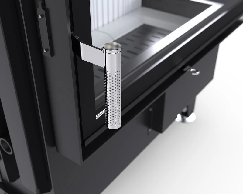 Dolot powietrza w Intra S BP MINI został zaprojektowany tak, by spalanie drewna było efektywne i ekologiczne. Konstrukcja zapobiega nadmiernemu wychładzaniu komorze ognia, gdy komin wytwarza silny ciąg. Dopływ tlenu można regulować w zależności od potrzeb użytkownika, a ciepłe powietrze pozostaje w palenisku dłużej. Mniej energii ucieka w kanał wentylacyjny. W ten sposób kominek oddaje więcej ciepła do pomieszczenia i wspiera ekonomiczny charakter ogrzewania.