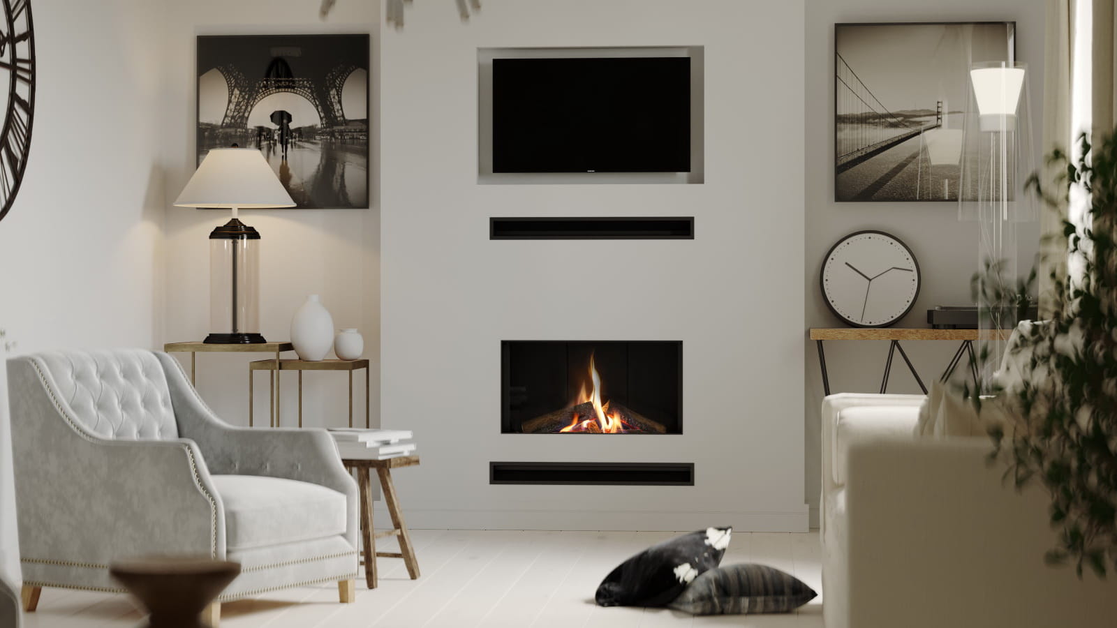 Pierwszoplanowe jest jego wnętrze, to jest element kluczowy, na który zawraca się uwagę nie tylko gdy ogień płonie. Opcjonalne elementy dekoracji paleniska, wpływają na jego wygląd, a czarna ceramika szklana potrafi wzmocnić wyrazistość płomienia. W palenisku Vital każdy znajdzie swoją, indywidualną wersje kominka.