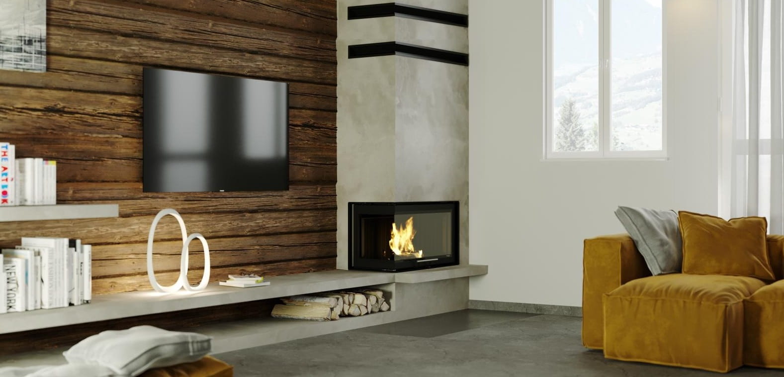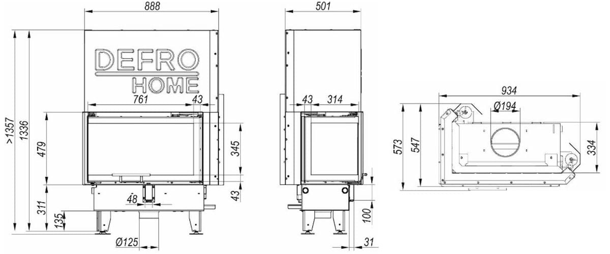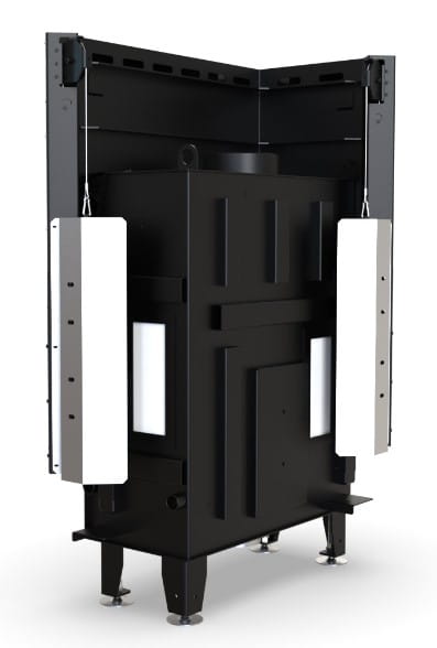 Wkład kominkowy Defro Impuls M BL G - narożny lewy z gilotyną czyli drzwiami unoszonymi do góry.
