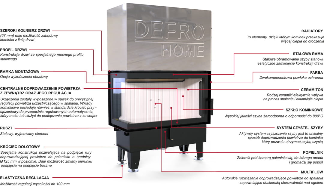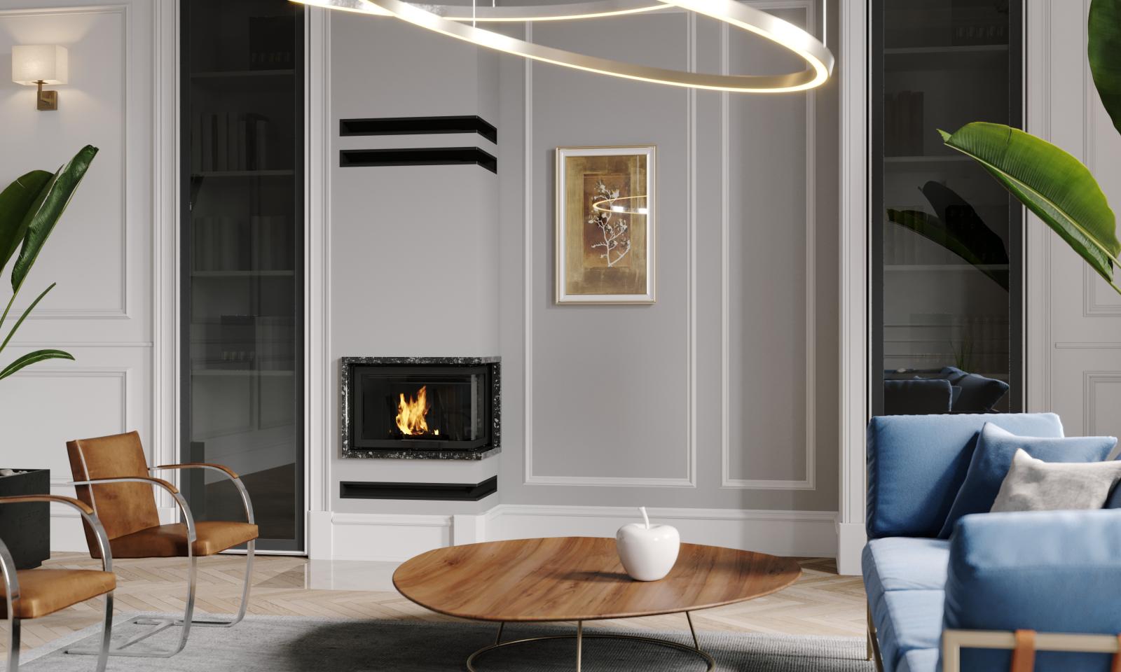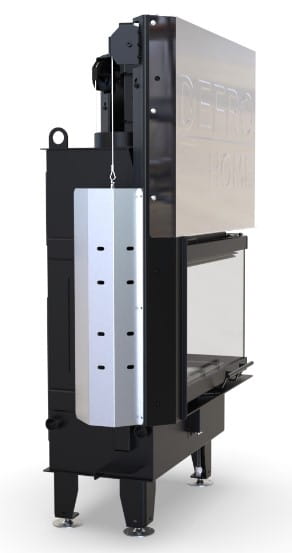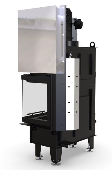 Wkład kominkowy Defro Impuls M BP G - narożny prawy z gilotyną czyli drzwiami unoszonymi do góry.