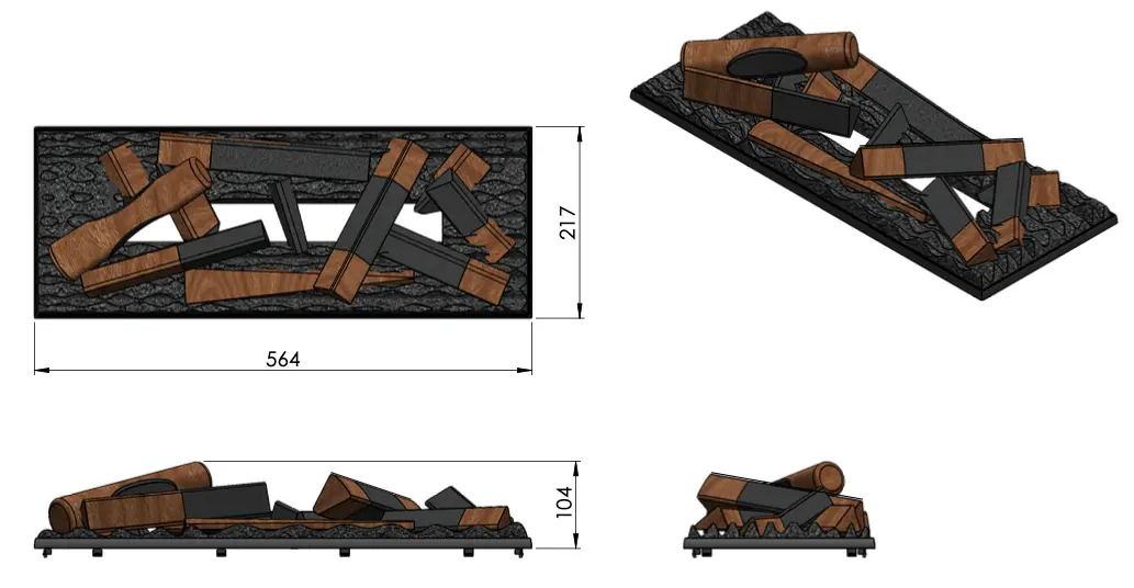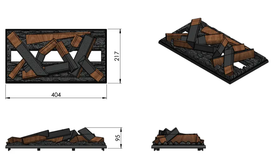 Kominek elektryczny Cassette 400/600 LED można zakupić w wersji z zestawem polan imitujących drewno. W celu zakupienia kasety z zestawem polan wybierz odpowiedni wariant. Dostępne są polana o szerokości 40 lub 60 cm.