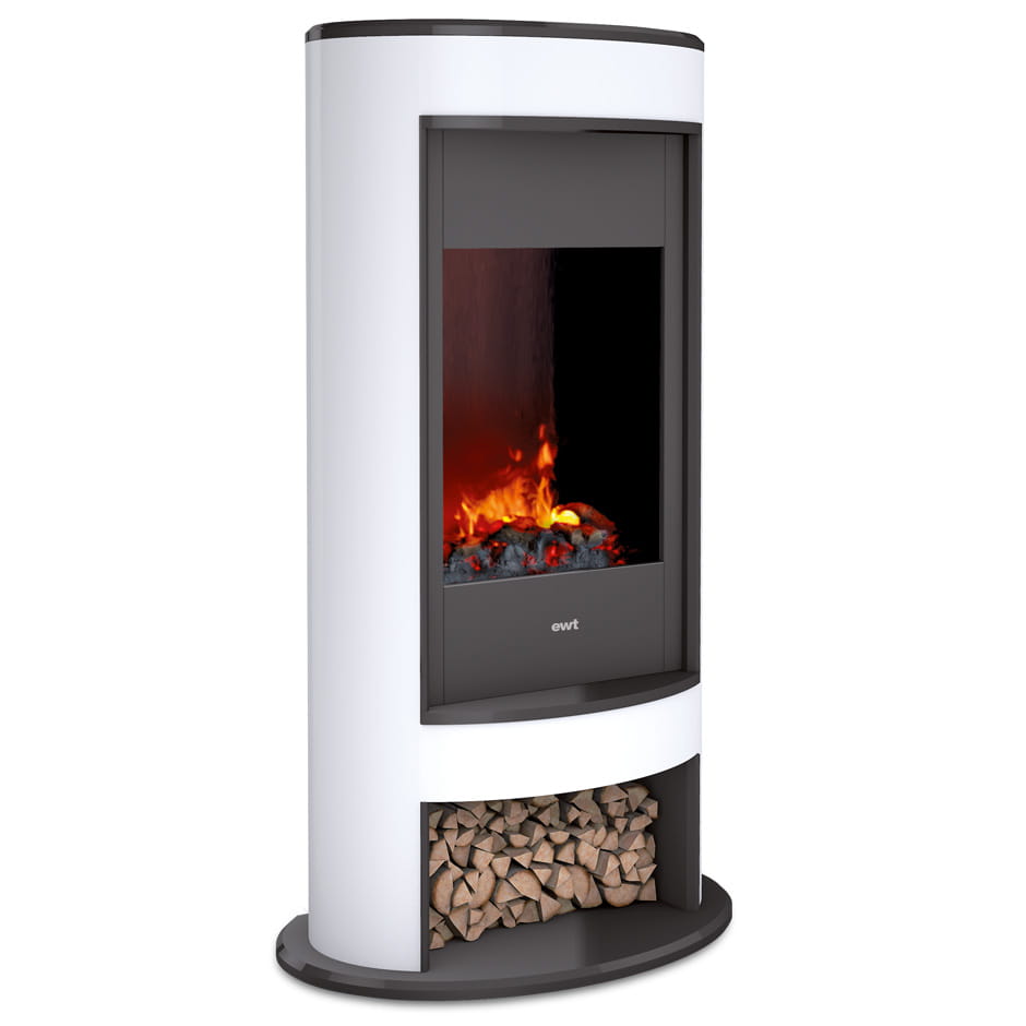 Nowoczesny kominek elektryczny wyróżniający się ponadczasowym wzornictwem, które sprawdzi się w każdym pomieszczeniu. Obudowa w kolorze białym ze zintegrowaną półką na polana.