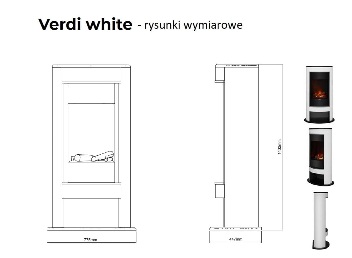 Rysunki wymiarowe kominka elektrycznego Verdi White