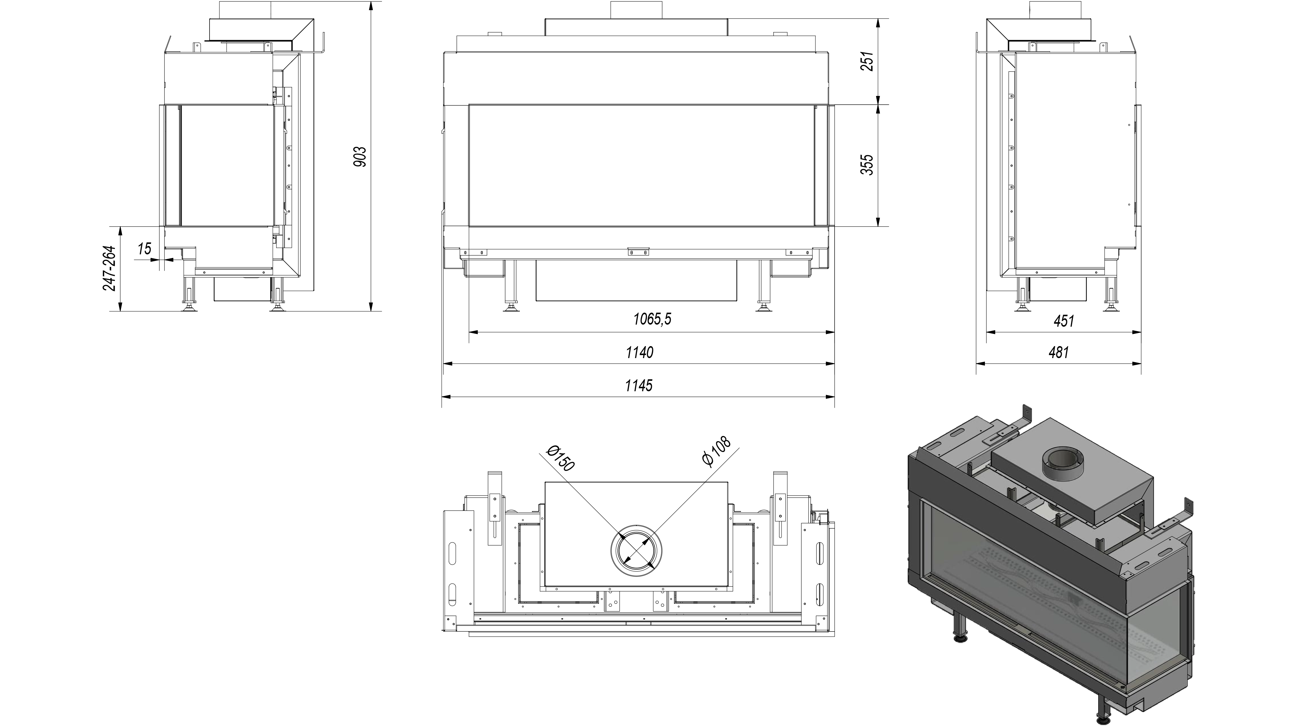 Kominek gazowy Leo 100 prawy