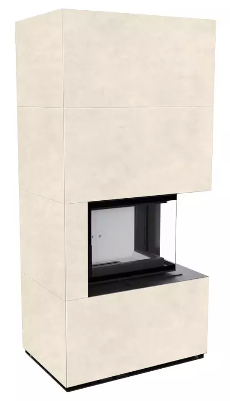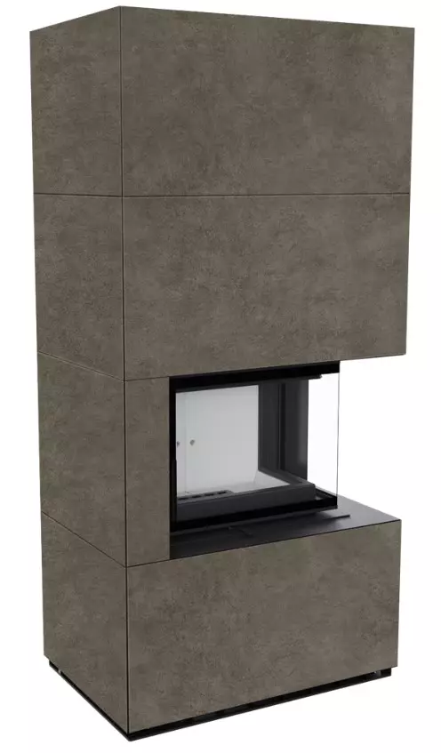 Kominek modułowy FLOKI BOX prawy 8 kW fi 160 zabudowa ze spieku kwarcowego w szesnastu pięknych kolorach i strukturach