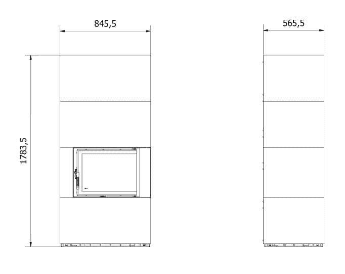 Rysunek techniczny kominka modułowego Floki Box Prawy