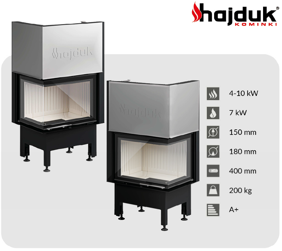 Narożny wkład kominkowy Hajduk Smart 2LXTh Lewy gilotyna to nowoczesna dwupłaszczowa konstrukcja stalowa - sprawdzone od lat rozwiązanie. Wkład kominkowy spełnia normy EkoProjekt, możemy być stosowany w domach z rekuperacją a dzięki solidnej konstrukcji i ...