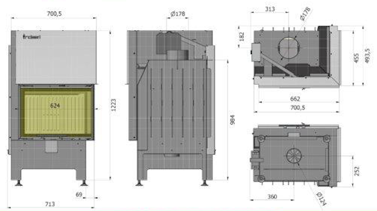 Kominek stalowy Heatro 55 Prawy H 9 kW