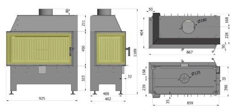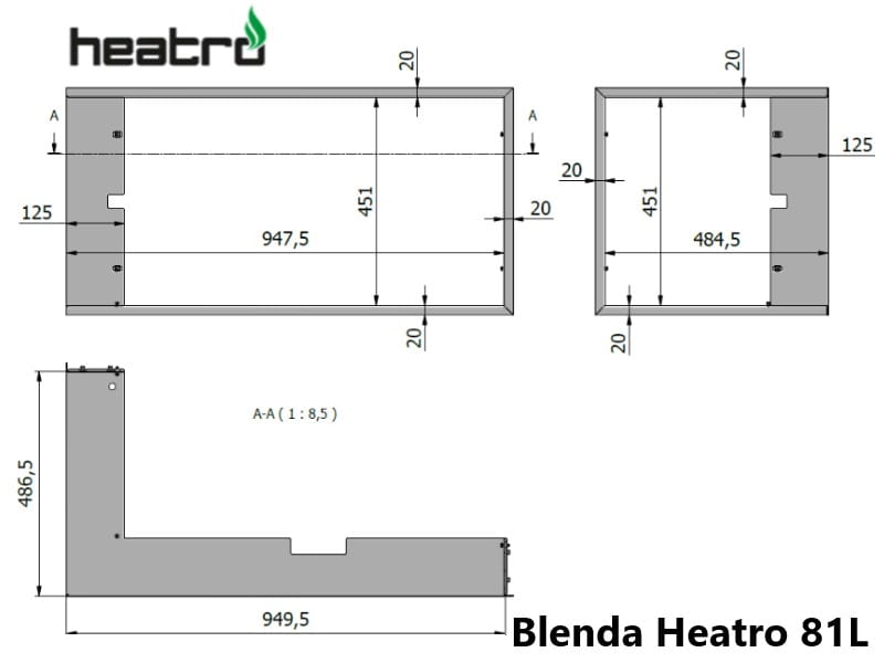 Wymiary kominka Heatro 81 Lewy - 12 kW