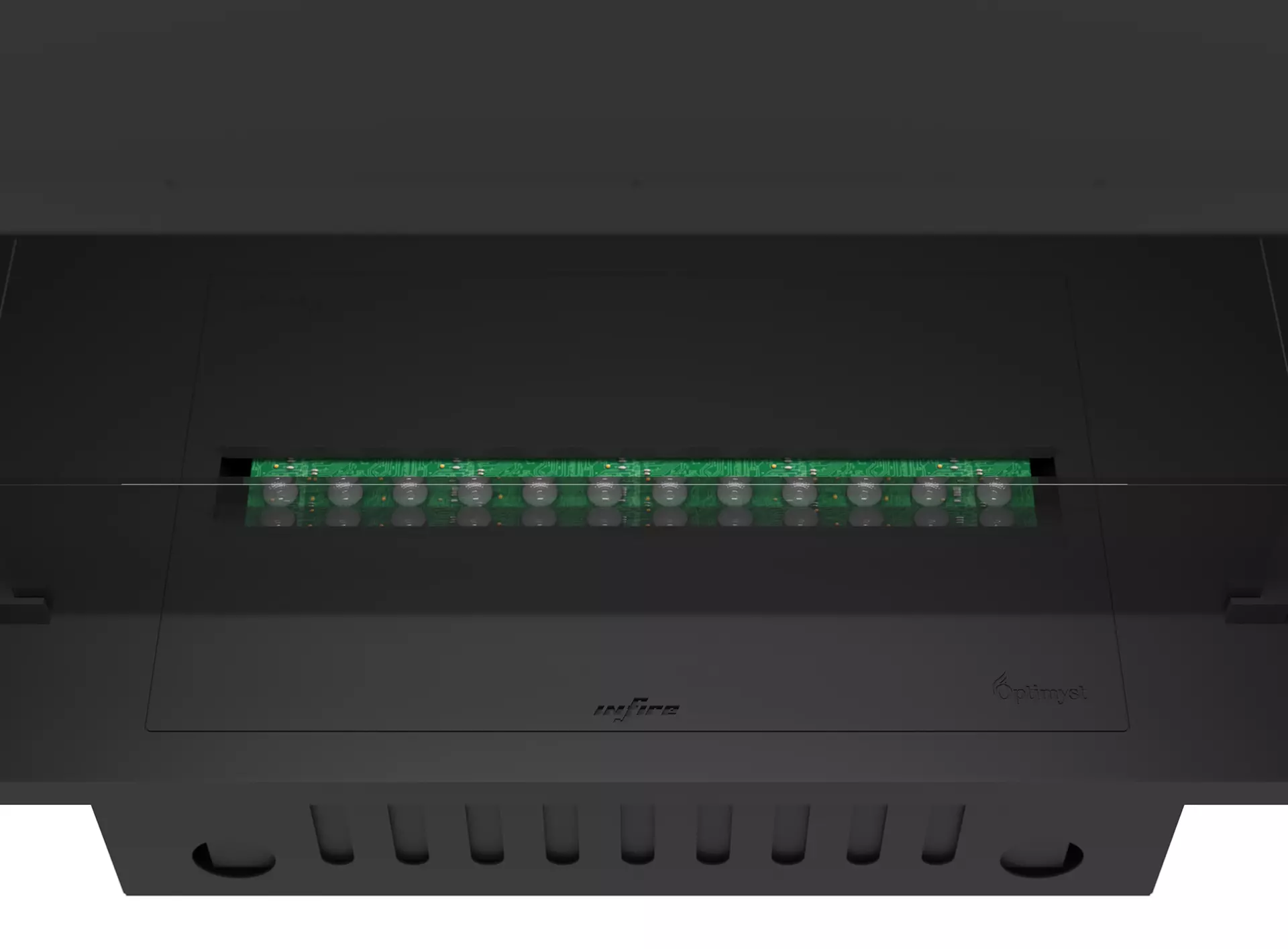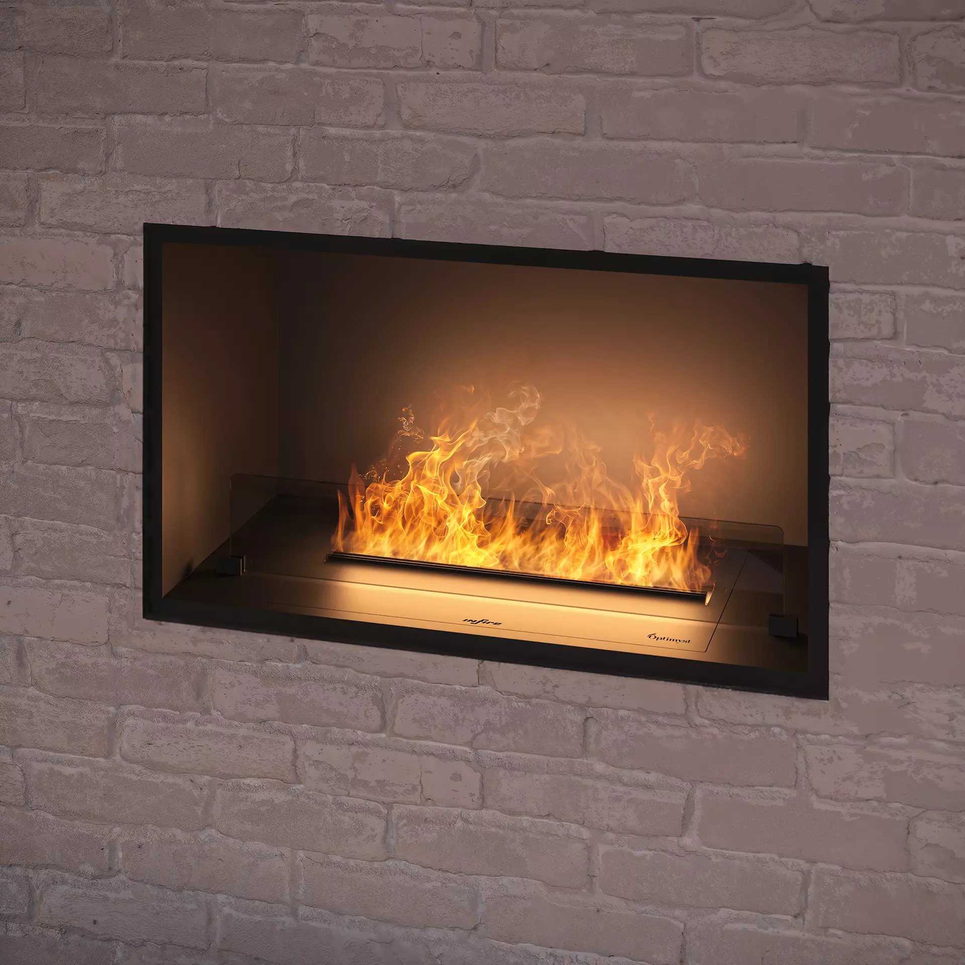 Wkład Inside wyposażony jest w kasetę 500 Ratail Multi, która daje efekt płomienia Multicolor Optymist z podświetleniem wielobarwnym LED. Kolor podświetlenia jest regulowany za pomocą pilota (w komplecie) lub aplikacji. Pojemność kasety na wodę wynosi 1,2 litra. Maksymalny czas działania to 8-10 godzin. W komplecie znajdują się szyba o zaokrąglonych krawędziach. Wymiary szyby to 66x10 cm.