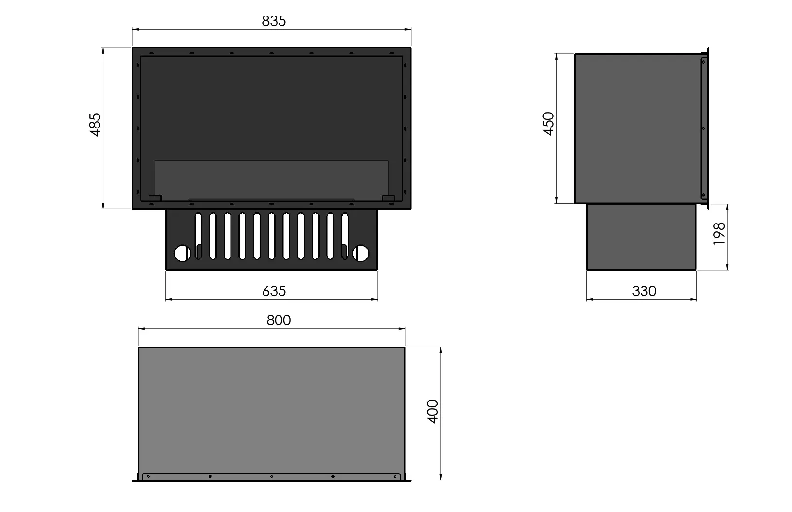 Kominek może być zamontowany w ścianie lub w zabudowie. Może być zabudowany w płycie K-G lub MDF.