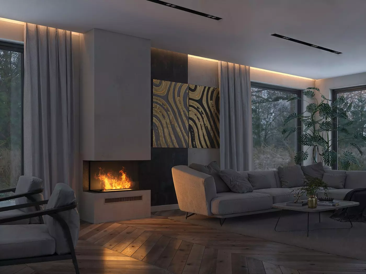 Model INVAPO Corner 1200 to narożny kominek parowy dostępny w wersji lewej lub prawej.