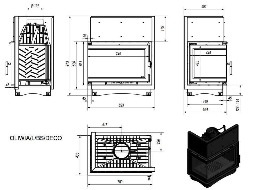 Wkład kominkowy OLIWIA 16 kW LEWY BS DECO SZYBY ŁĄCZONE BEZ SZPROSA Szyba boczna dzielona - wkład kominkowy z dwoma szybami zestawionymi ze sobą pod kątem prostym.