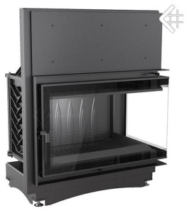 6. Szyba boczna dzielona - wkład kominkowy z dwoma szybami zestawionymi ze sobą pod kątem prostym (szyby łączone bez szprosa)