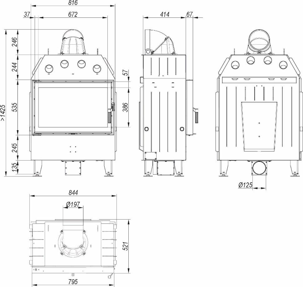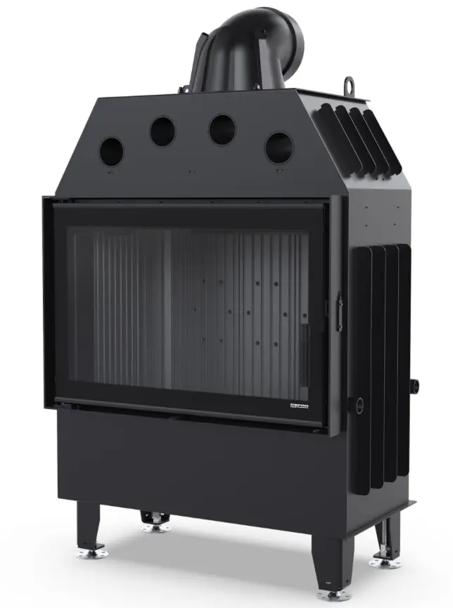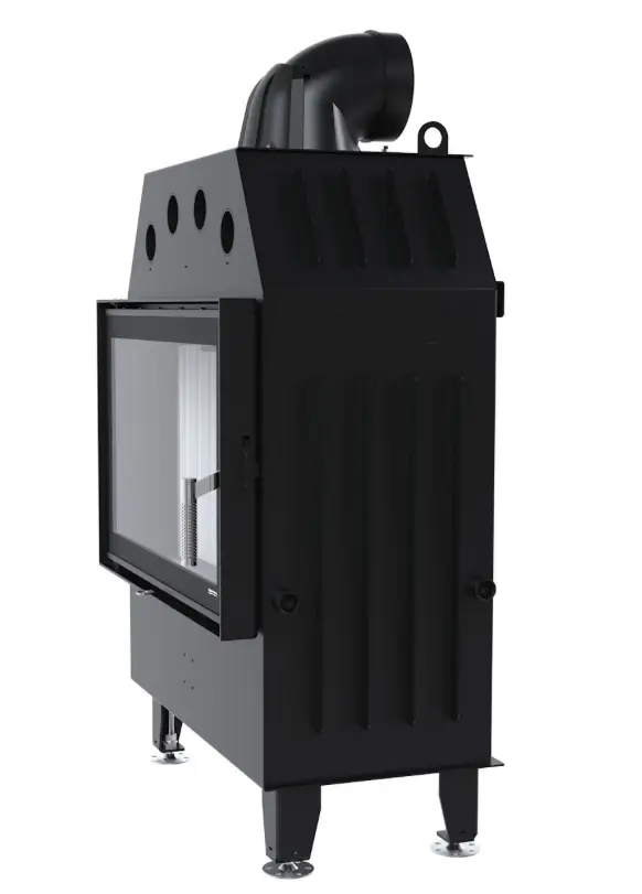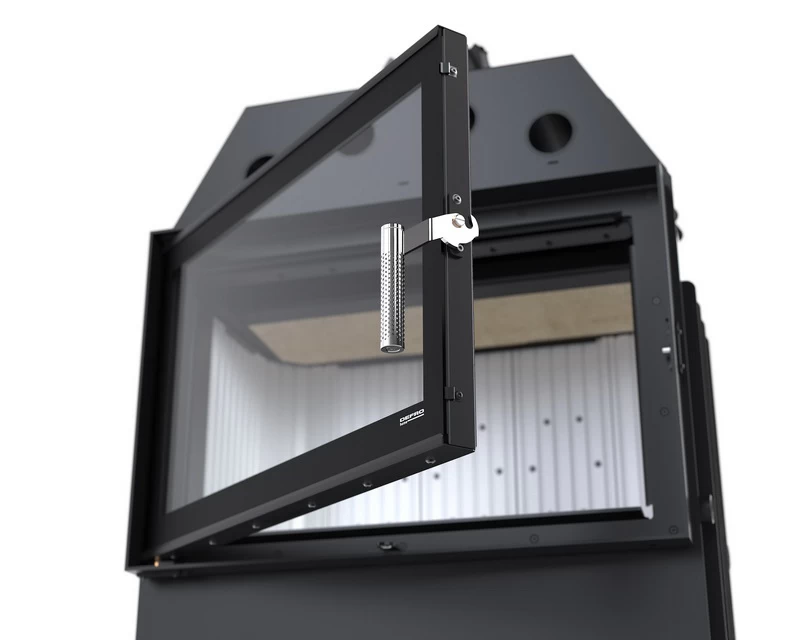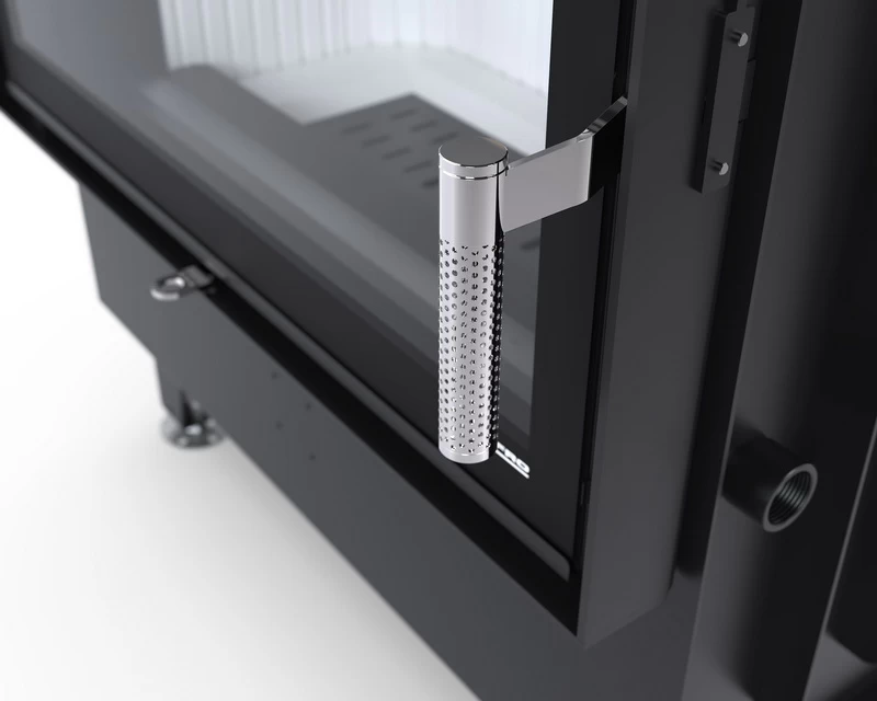 Wkłady INTRA standardowo wyposażono w system czystej szyby, regulację dopływu powietrza wtórnego i pierwotnego jednym suwakiem oraz system dopalania spalin. Atutem jest perforowana klamka, która się nie nagrzewa. Palenisko zostało wyłożone wytrzymałymi kształtkami z żarobetonu (ceramika+beton).
