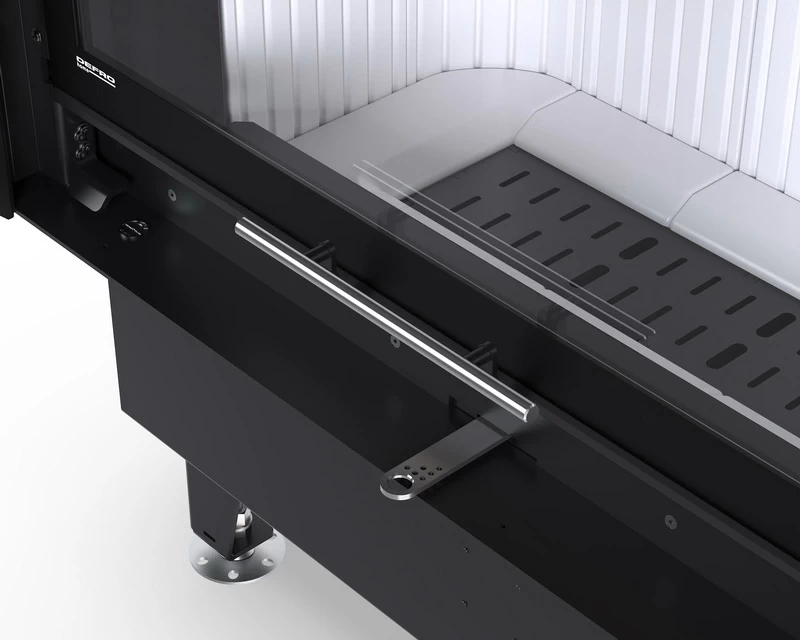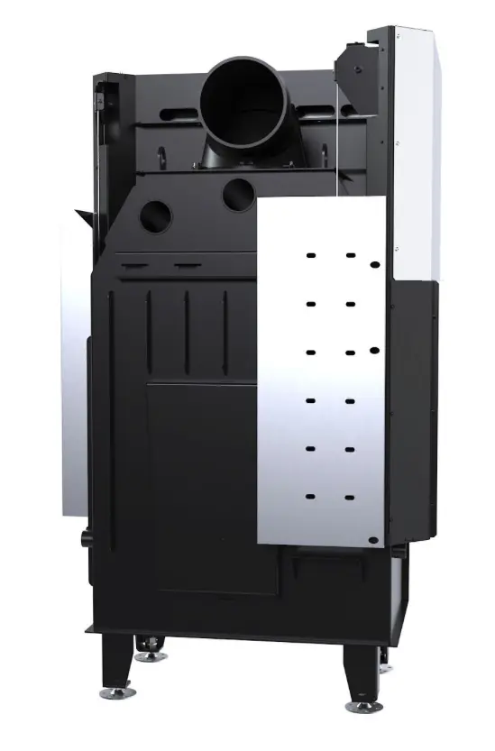 Standardowo wkład Intra wyposażono w system czystej szyby, regulację dopływu powietrza wtórnego i pierwotnego jednym suwakiem oraz system dopalania spalin. Atutem jest perforowana klamka, która się nie nagrzewa. Palenisko zostało wyłożone wytrzymałymi kształtkami z żarobetonu (ceramika+beton).