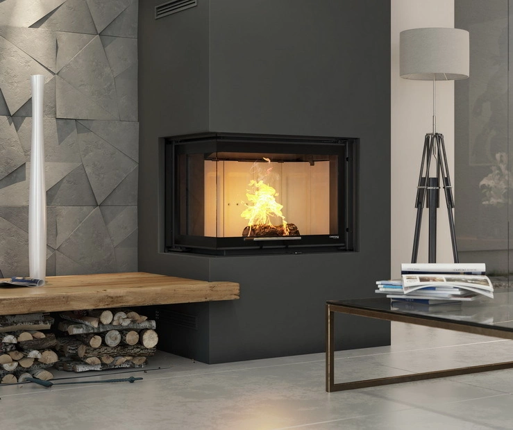 Narożny powietrzny wkład kominkowy DEFRO Home INTRA S BL Gilotyna o mocy 10 kW to kominek, który spełnia normy EkoProjekt oraz nadaje się do domów z wentylacją mechaniczną i rekuperacją. Dzięki wysokiej sprawności na poziomie 81,2% oraz innowacyjnym rozwią...