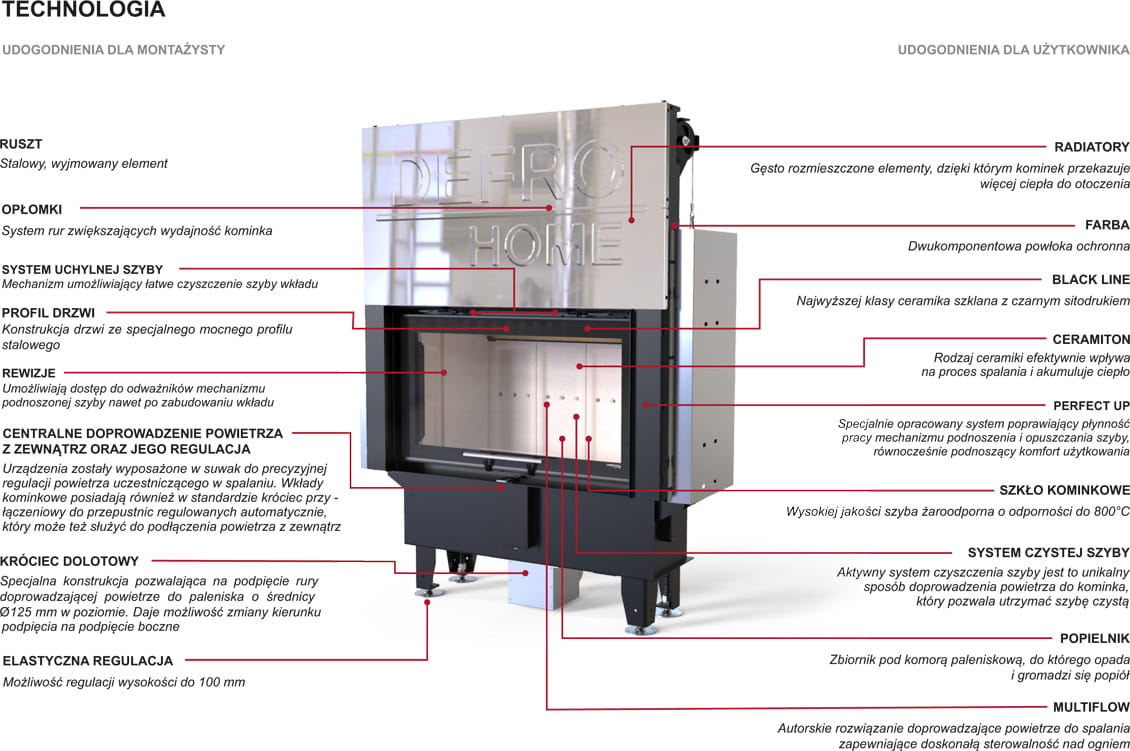 • Wysokiej jakości szyba z sitodrukiem o odporności do 750°C