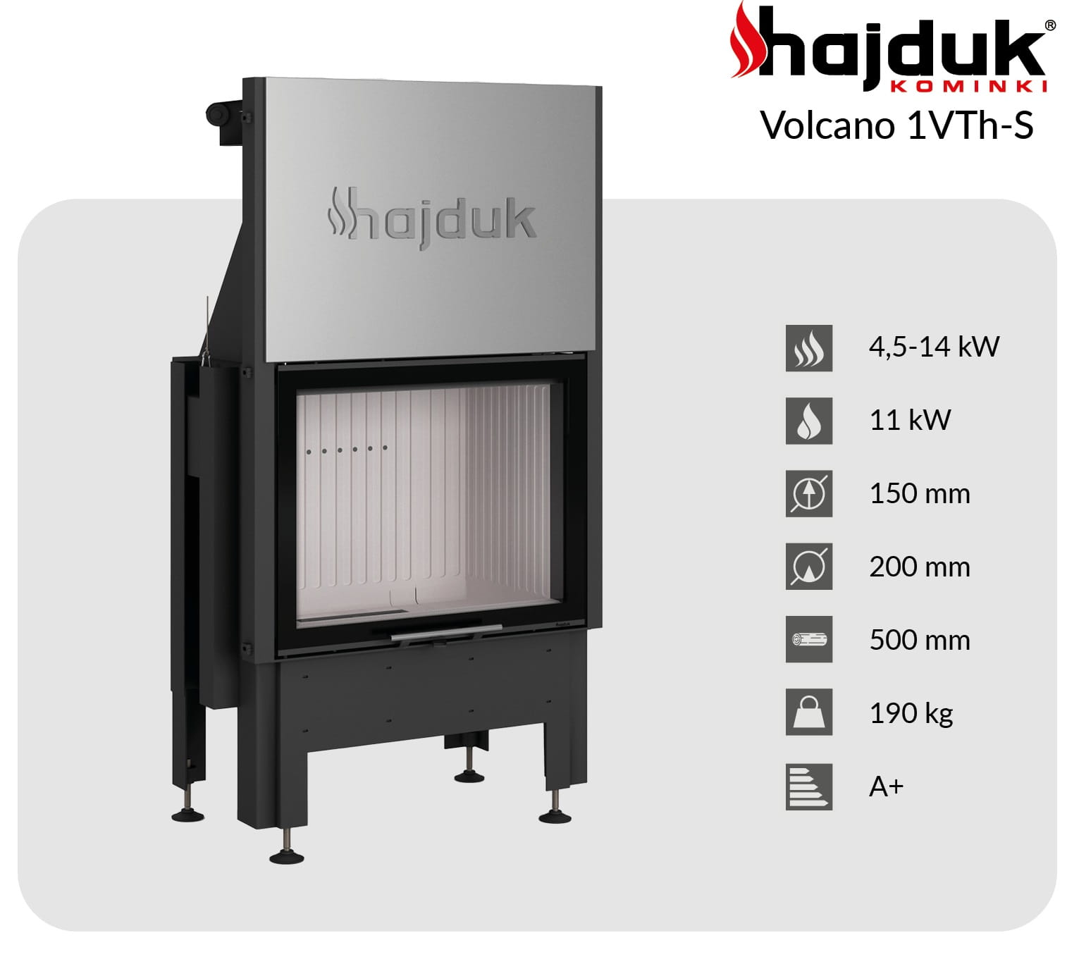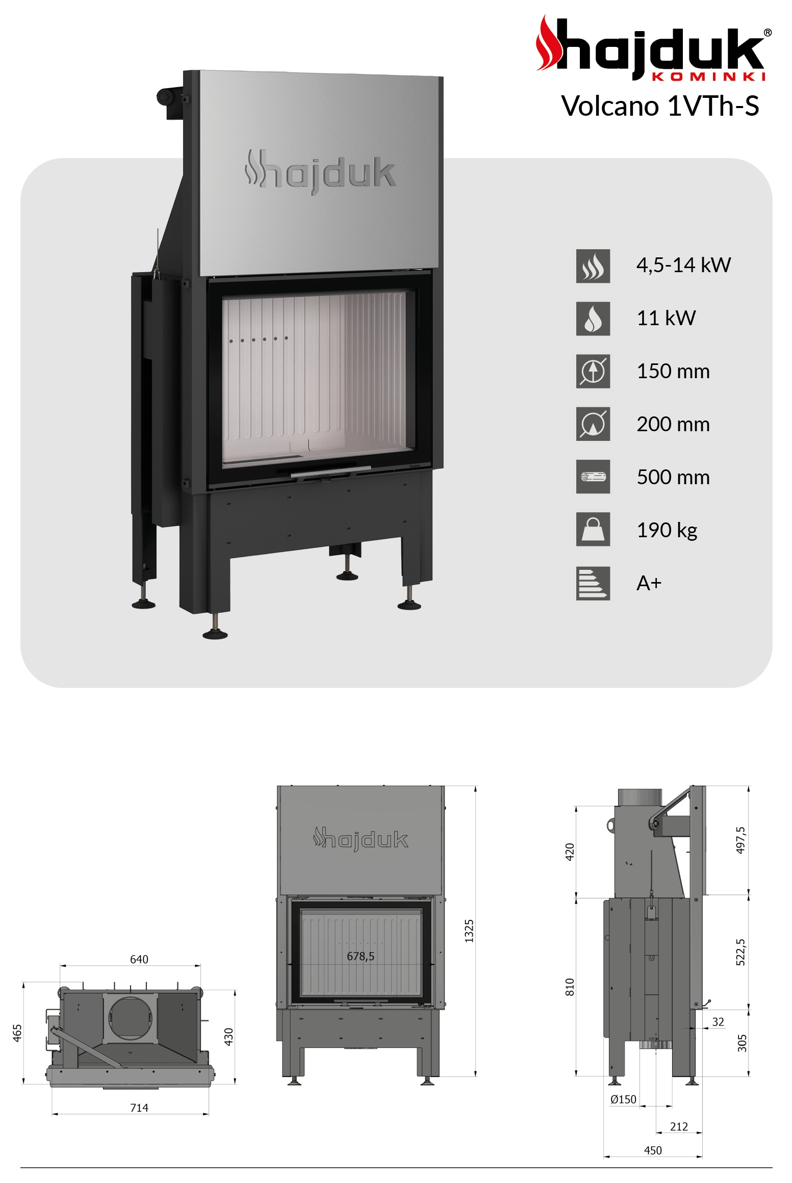 Karta techniczna kominka stalowego Hajduk Volcano 1VTh-S