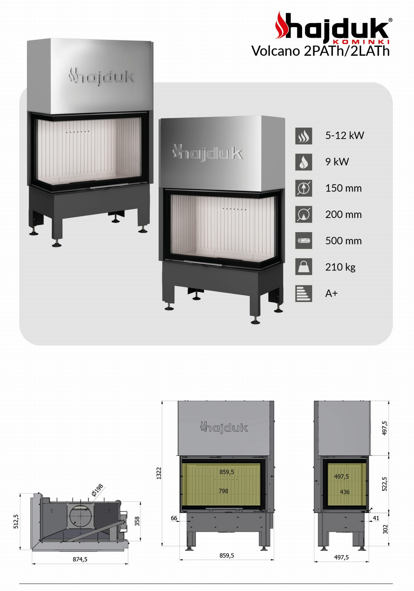 Karta techniczna kominka stalowego Hajduk Volcano 2LATh