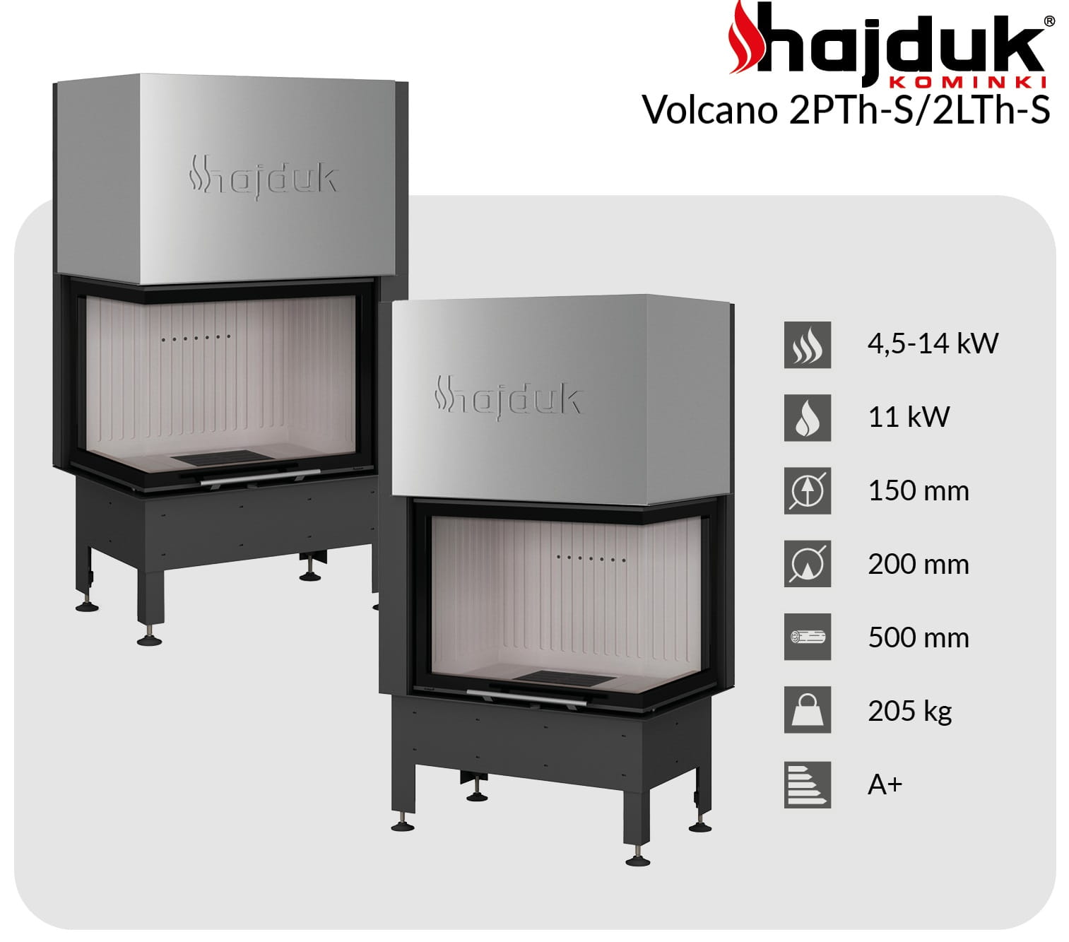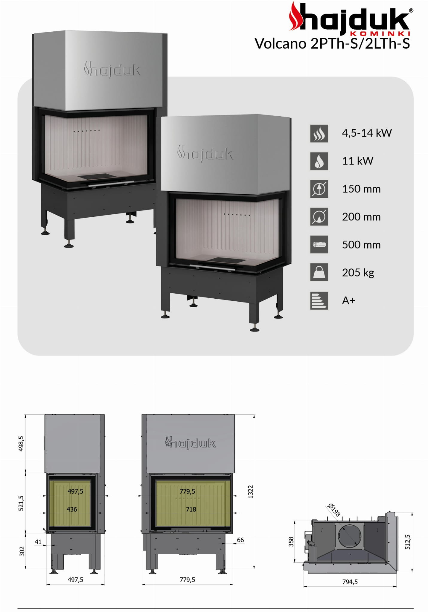Karta techniczna kominka stalowego Hajduk Volcano 2LTh-S