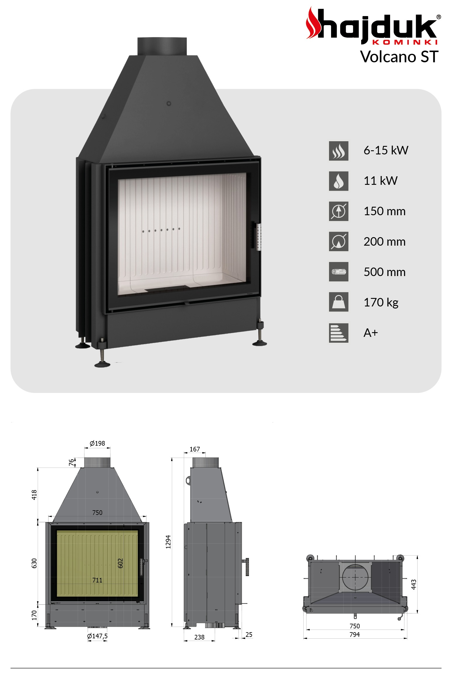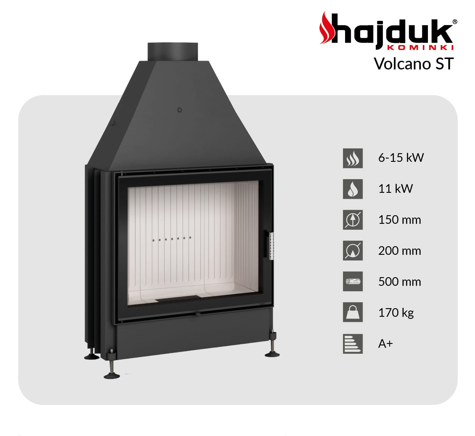 Karta techniczna kominka stalowego Hajduk Volcano ST