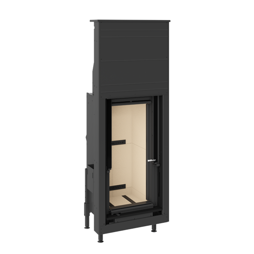 Precyzyjny mechanizm otwierania drzwiczek umożliwia łatwe i ciche podnoszenie i opuszczanie szyby jednym ruchem ręki. We wkładach kominkowych Dorako Kfdesign można palić również przy otwartym palenisku i cieszyć się niepowtarzalną atmosferą kominka tradycyjnego. Opcjonalnie wkłady mogą być wyposażone w system elektrycznego podnoszenie drzwiczek ze zdalnym sterowaniem.