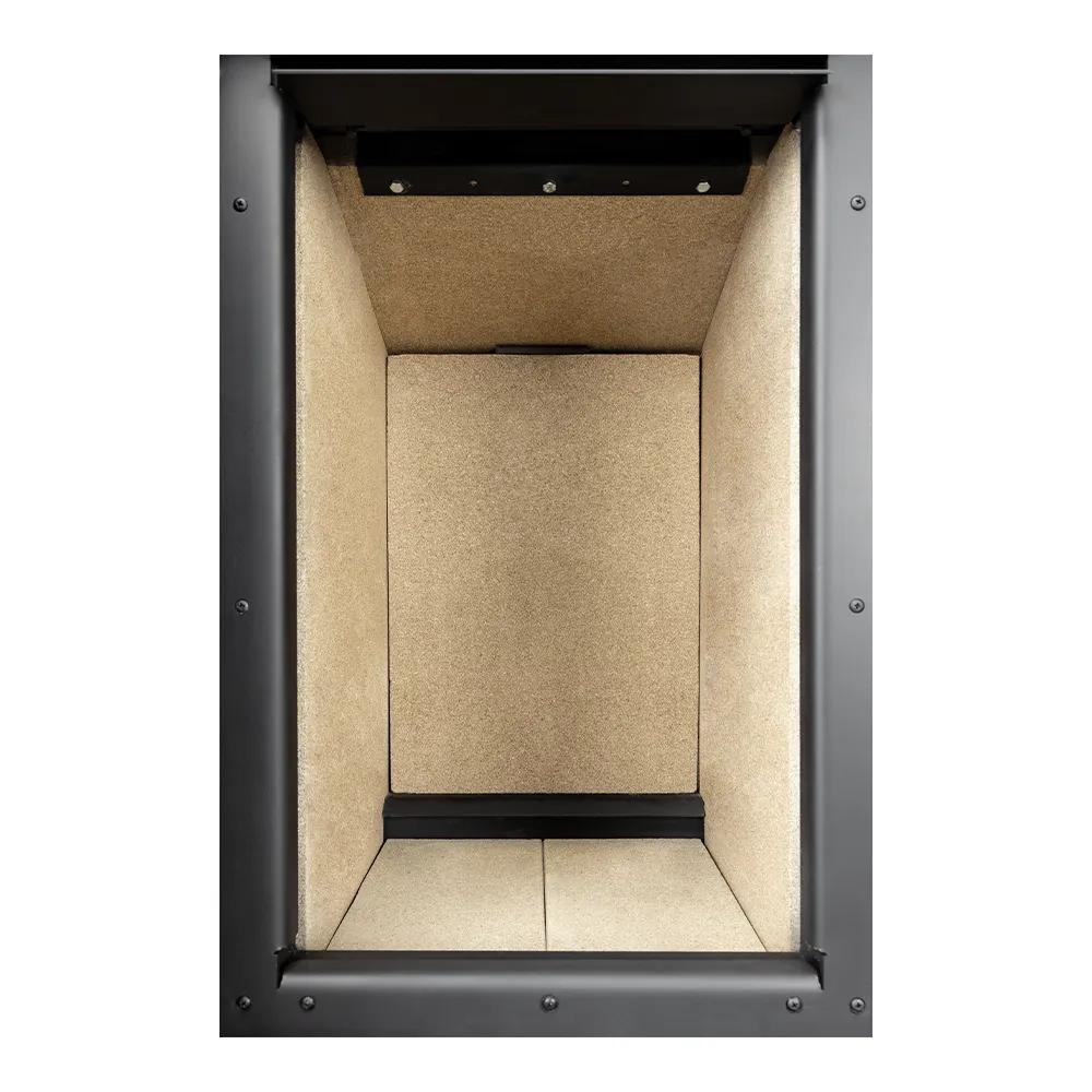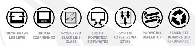 Paleniska są całkowicie szczelne, wyposażone w dolot powietrza zewnętrznego 100mm, przeznaczone do domów z wentylacją mechaniczną i rekuperacją. Posiadają niezależne sterowanie powietrzem pierwotnym i powietrzem wtórnym (kurtyną powietrzną). Poza standardowym deflektorem z wermikulitu zastosowano w górnej części dodatkowy deflektor stalowy, wypełniony masą akumulacyjną.