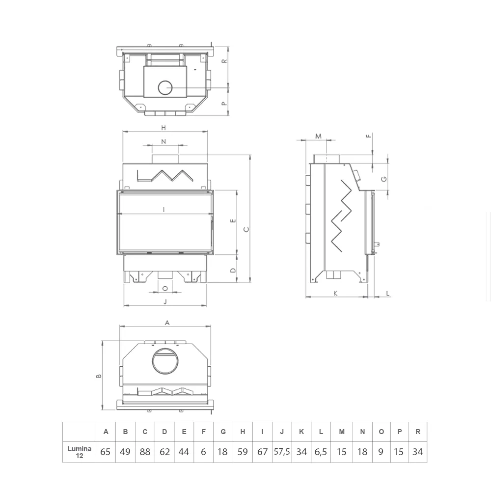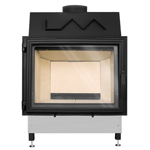 Stalowy wkład kominkowy konwekcyjny z żeliwnym frontem LAVA LUMINA CLARA 12 kW z płaską szybą i wypełnieniem ceramicznym do rekuperacji z certyfikacją ecodesign.