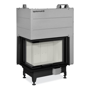 Kominek stalowy Heat L 3G L 65.51.40.24 to narożny ( z boczną szybą z lewej strony), stalowy wkład kominkowy najnowszej generacji z tzw. gilotyną, czyli drzwiami unoszonymi do góry, od uznanego czeskiego producenta kominków Romotop.