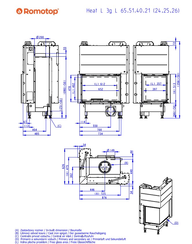 Kominek stalowy Romotop Heat L 3G L 65.51.40.24 narożny lewy z gilotyną