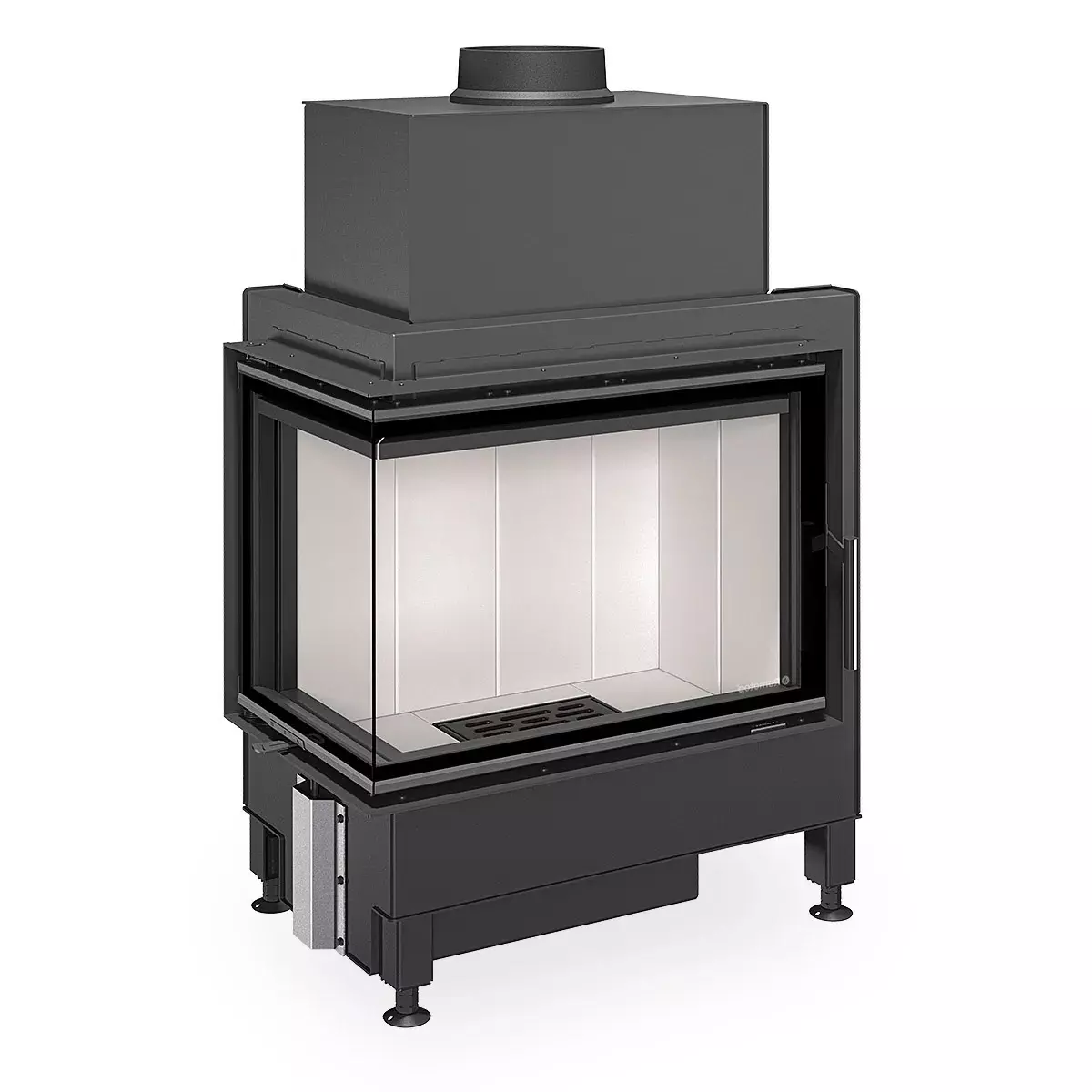 Kominek Heat L 4G S 65.51.40.24 to doskonały stalowy wkład kominkowy narożny z szybą boczną z lewej strony o mocy 10,4 kW od renomowanego czeskiego producenta kominków Romotop.