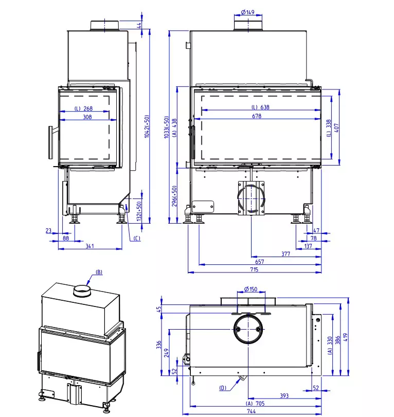 Wkłady kominkowe Heat może zakupić z białym wyłożeniem paleniska tzw. ignitonem (w standardzie) lub z czarnym (za dopłatą). Wersję z czarnym ignitonem należy wybrać w opcjach.