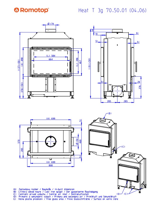 Kominek Heat T 3G 70.50.04 to dwustronny, przeszkolony z dwóch stron, najnowszej generacji stalowy wkład kominkowy typu tunel od uznanego czeskiego producenta kominków Romotop.