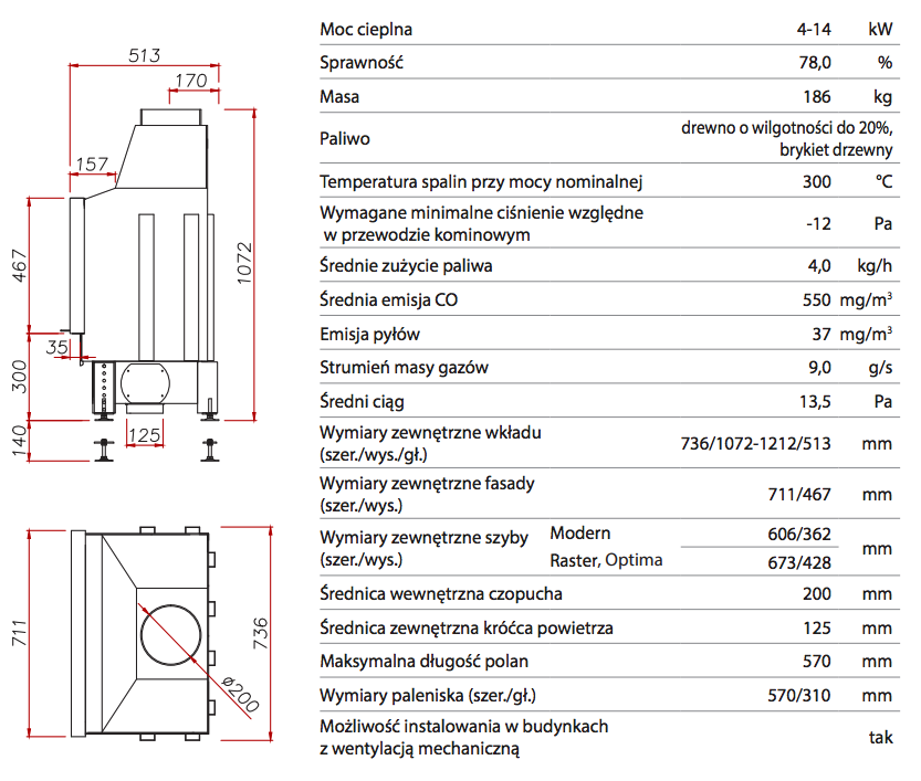 Dane techniczne UNICO DRAGON 4/14: