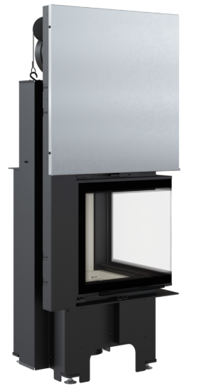 Drzwi wkładu pracują w systemie lift up - szyba unoszona do góry. System ten został zbudowany w oparciu o przeciwwagę - bloczek z linką stalową pracuje w prowadnicach na dwóch łożyskowanych krążkach, dzięki którym ciężar drzwi rozkłada się równomiernie. Poruszają się one na ogniotrwałych łożyskach wzdłuż, zamontowanych w futrynie prowadnic ślizgowych, co gwarantuje ich lekką, cichą i bezawaryjną pracę. Ruch drzwiczek przebiega w odległości paru milimetrów od korpusu, co zapobiega uszkodzeniu uszczelnienia. Zamykane drzwi są wtłaczane z dużą siłą w głąb futryny, dzięki czemu palenisko jest całkowicie szczelne.