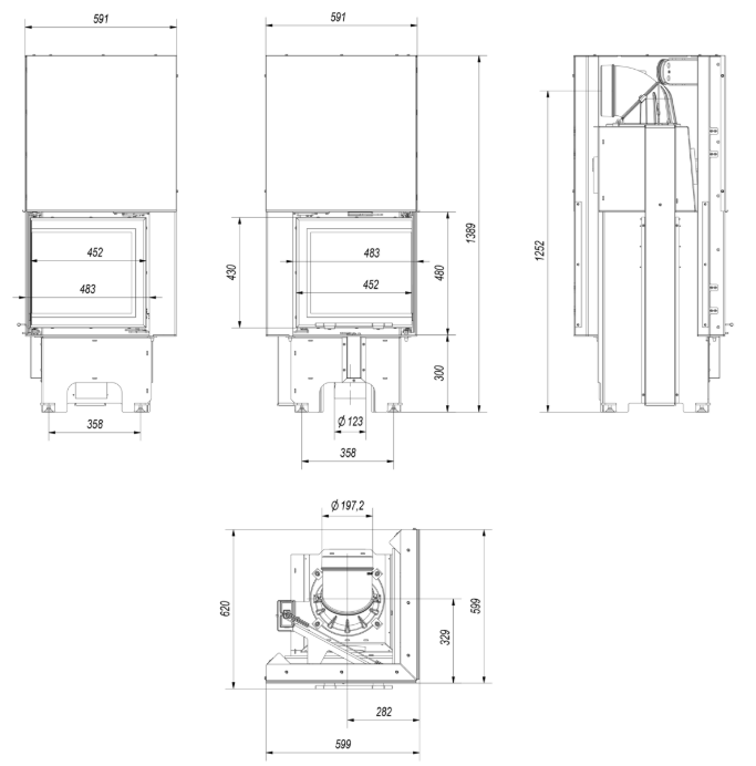 Kominek stalowy VN Prawy 480/480 Gilotyna 8 kW