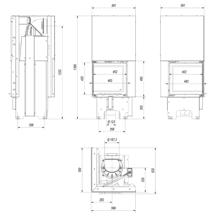 Kominek stalowy VN Lewy 480/480 Gilotyna 8 kW