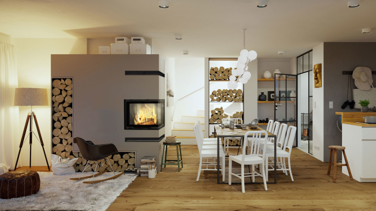 Wkład VN zwraca uwagę nowoczesnym designem i estetyką wykończenia. Zachwyca harmonijną wizją ognia, nadając wnętrzu niepowtarzalny styl. Ciepło promieniuje nie tylko frontalnie, ale również na bok. Kominek wyposażony jest w pojedynczą, dekoracyjną szybę typu Glass, dzięki której wygląda elegancko i nowocześnie. Zastosowanie tego rozwiązania optycznie powiększa front wkładu i podkreśla wizję ognia.