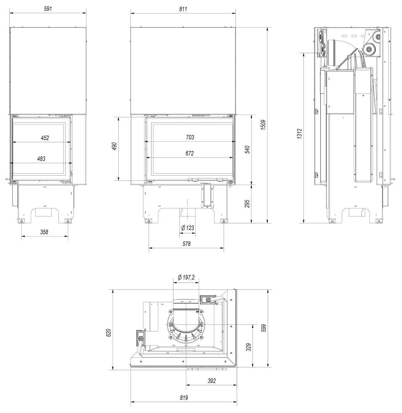 Kominek stalowy VN Prawy 700/480 gilotyna 12 kW