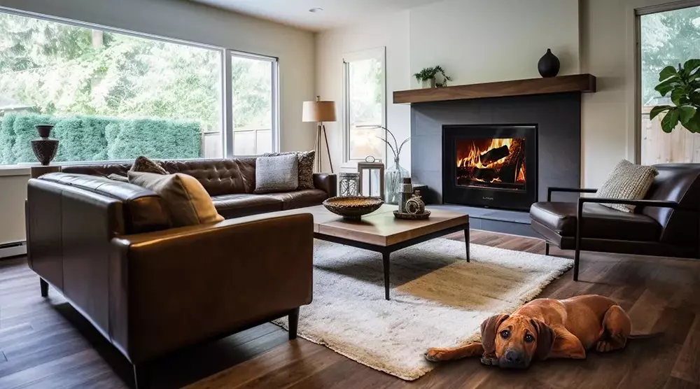 Kominek Lava TKL Trend 20 kW posiada regulowane stopy: zakres regulacji 40 mm, pozwalające go wypoziomować, czarną matową powłokę frontu, czarne okucia i płaską klamkę chowająca się w front. Drzwi otwierają się standardowo na lewą stronę – zawias po lewej stronie, klamka po prawej (otwieramy kominek lewą ręką i prawą realizujemy załadunek drewna). Jest to opcja odpowiednia dla osób praworęcznych i domyślna. Opcję standardową drzwi można zamienić na wersję odwrotną.