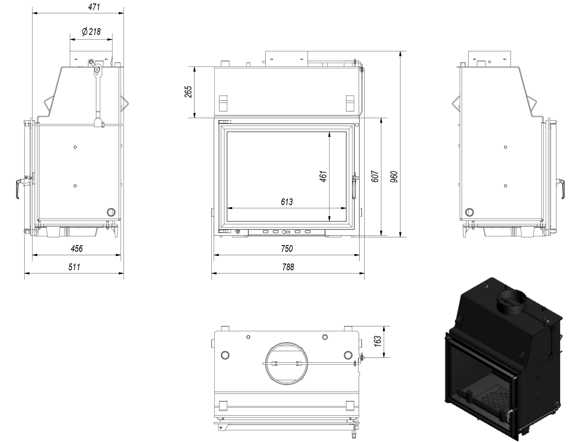 Wyjmowany ruszt i popielnik ułatwiają utrzymanie wkładu w czystości.