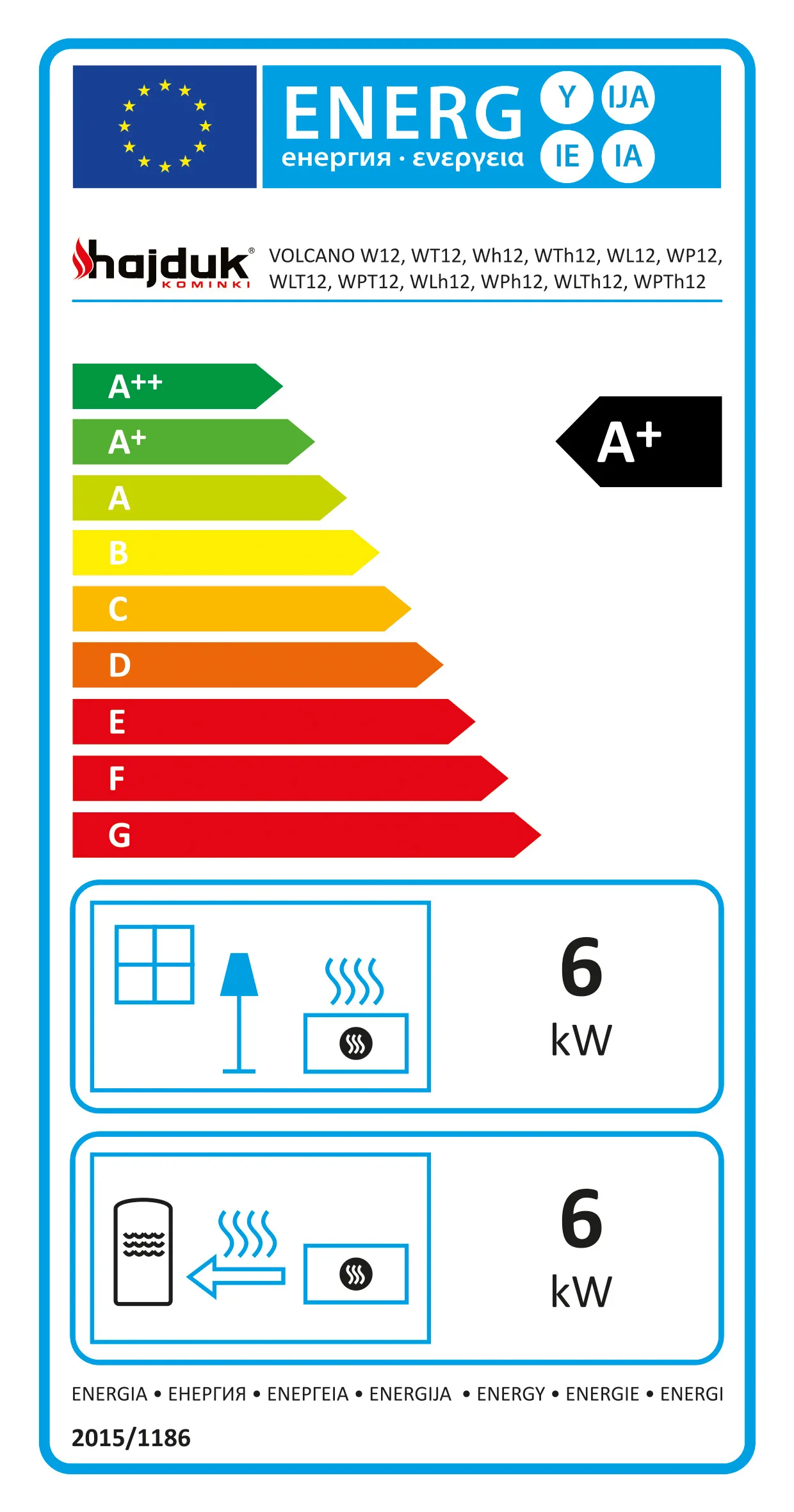 Etykieta energetyczna kominka Hajduk Volcano WT-12