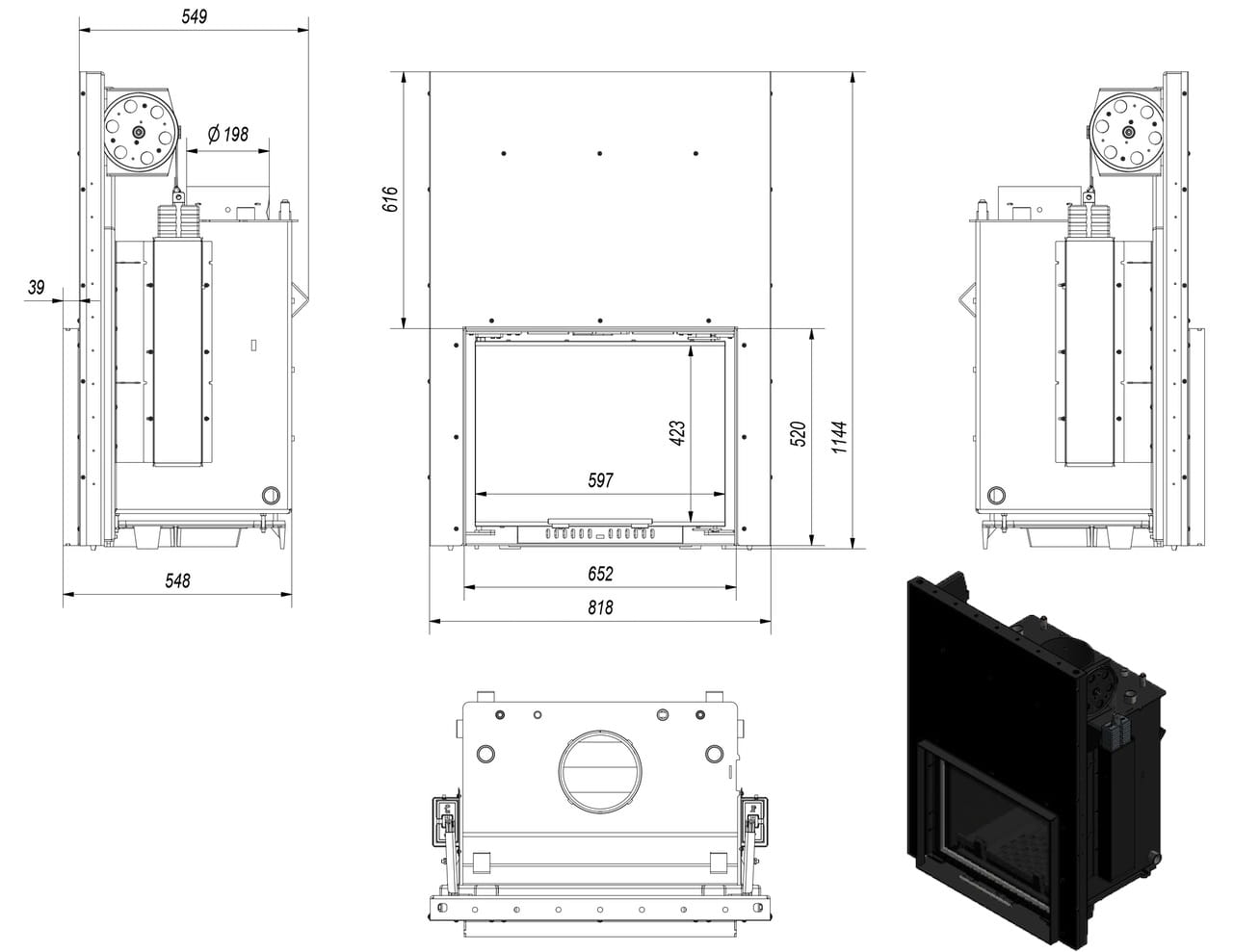 Kominek Zuzia Gilotyna PW 12 kW Deco ogrzewa do 120 m2. Do układu wodnego (C.O) oddawana jest moc 8 kW. Ciepło o wartości 4 kW oddawane jest przez szybę i korpus kominka. Kominek ma wbudowaną wężownicę schładzającą oraz szyber regulujący wylot spalin. W palenisku znajduje się ruszt i popielnik.