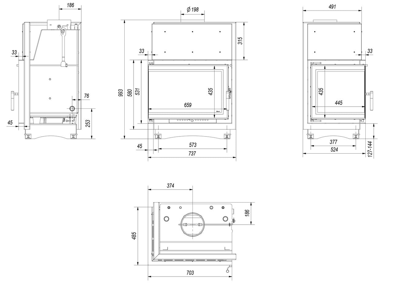 Dane techniczne kominka z płaszczem wodnym Zuzia Prawy BS 12 kW Deco