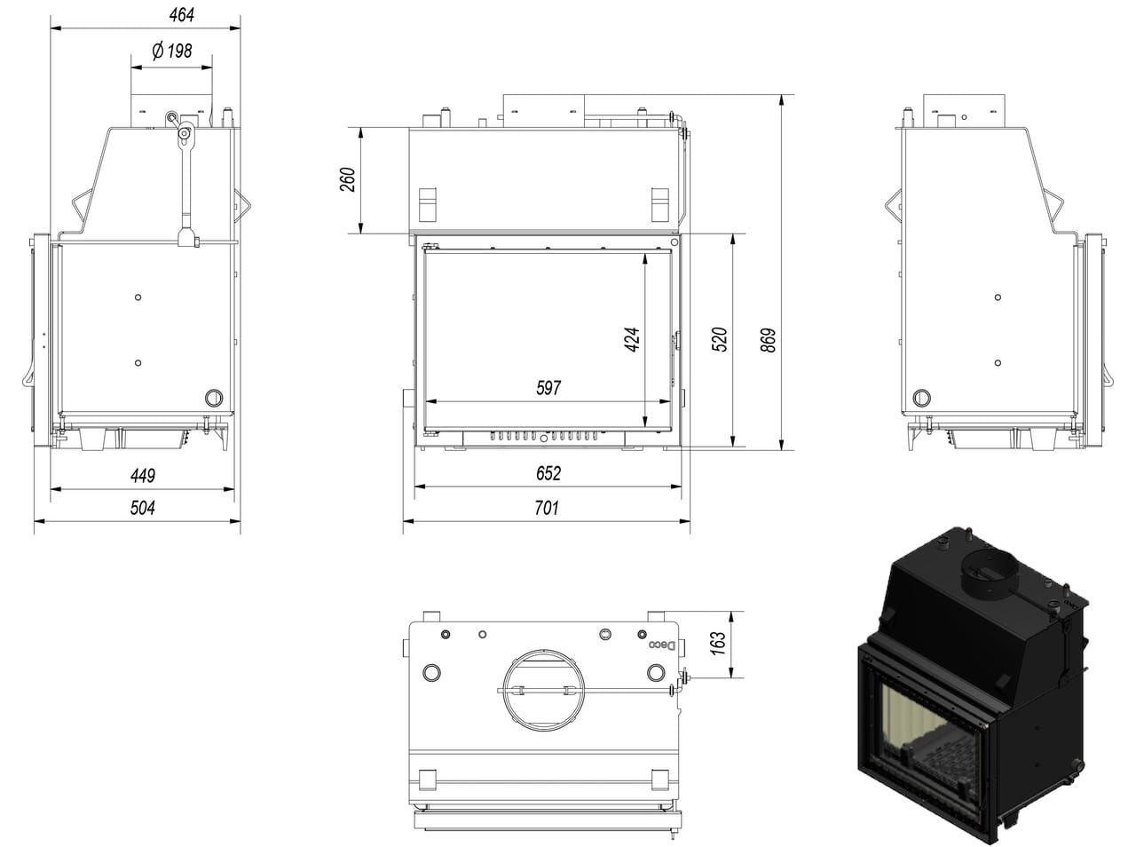 Kominek Zuzia PW 12 kW Deco ogrzewa do 120 m2. Do układu wodnego (C.O) oddawana jest moc 8 kW. Ciepło o wartości 4 kW oddawane jest przez szybę i korpus kominka. Kominek ma wbudowaną wężownicę schładzającą oraz szyber regulujący wylot spalin. W palenisku znajduje się ruszt i popielnik.